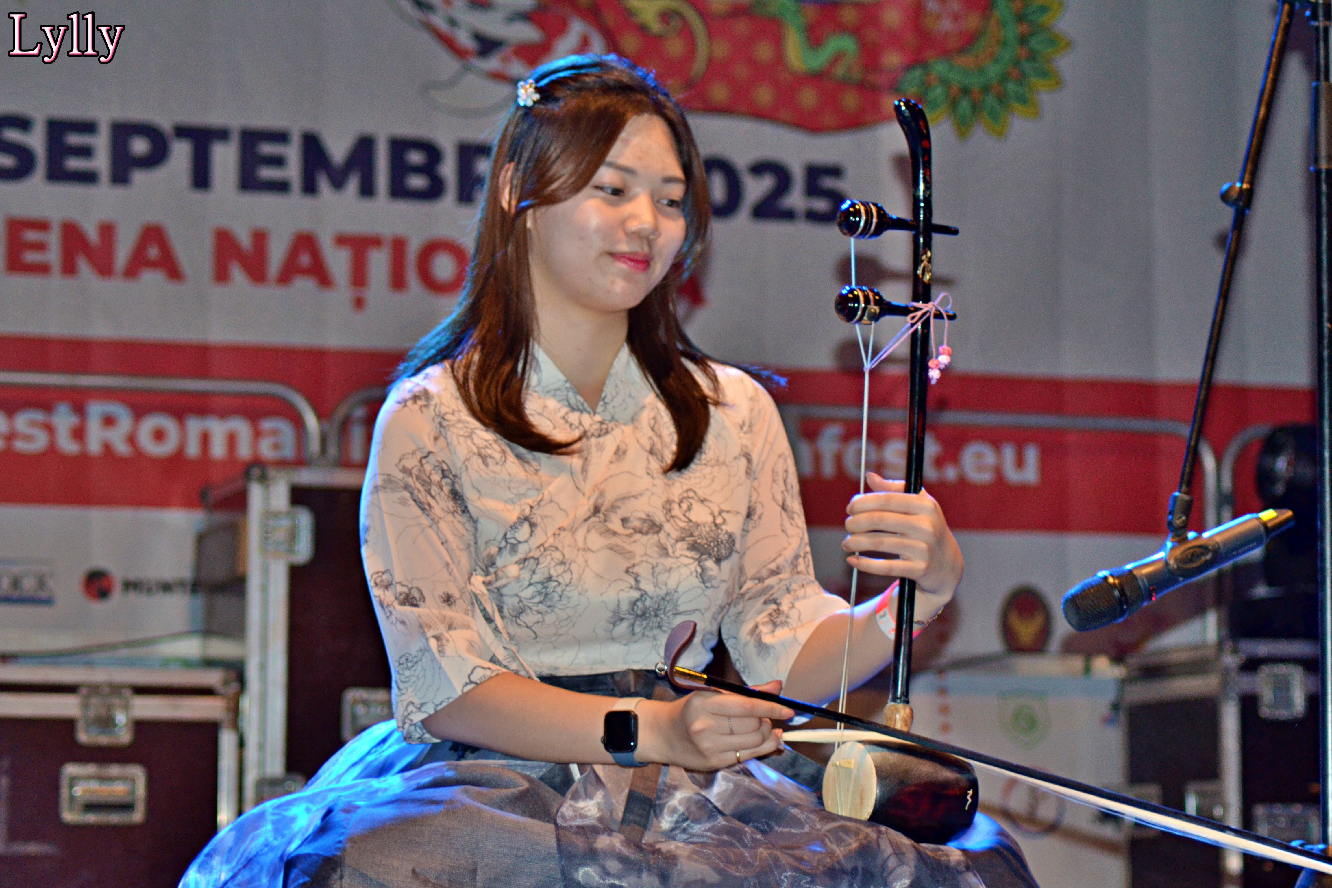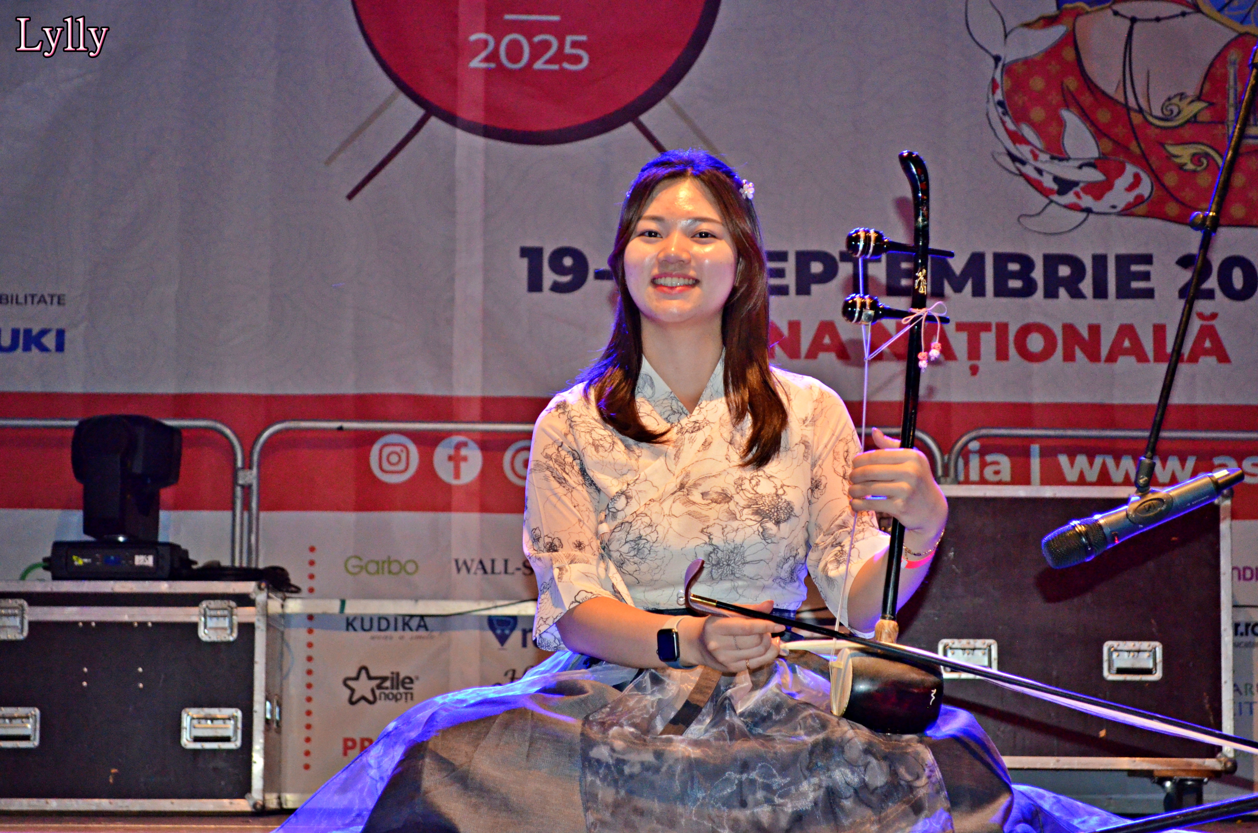 Iar când pe scenă, a intrat doamna Han Geumchae, timpul s-a oprit în loc, când a atins corzile haegeum-ului. Sunetele acestui instrument străvechi, cu vibrații profunde și melancolice, au curs precum doina noastră, teleportând publicul într-o lume a k-dramelor istorice și poveștilor nespuse. A fost un moment în care tradiția a prins glas, iar fiecare notă a atins sufletul ca o adiere de seară peste un câmp înflorit.