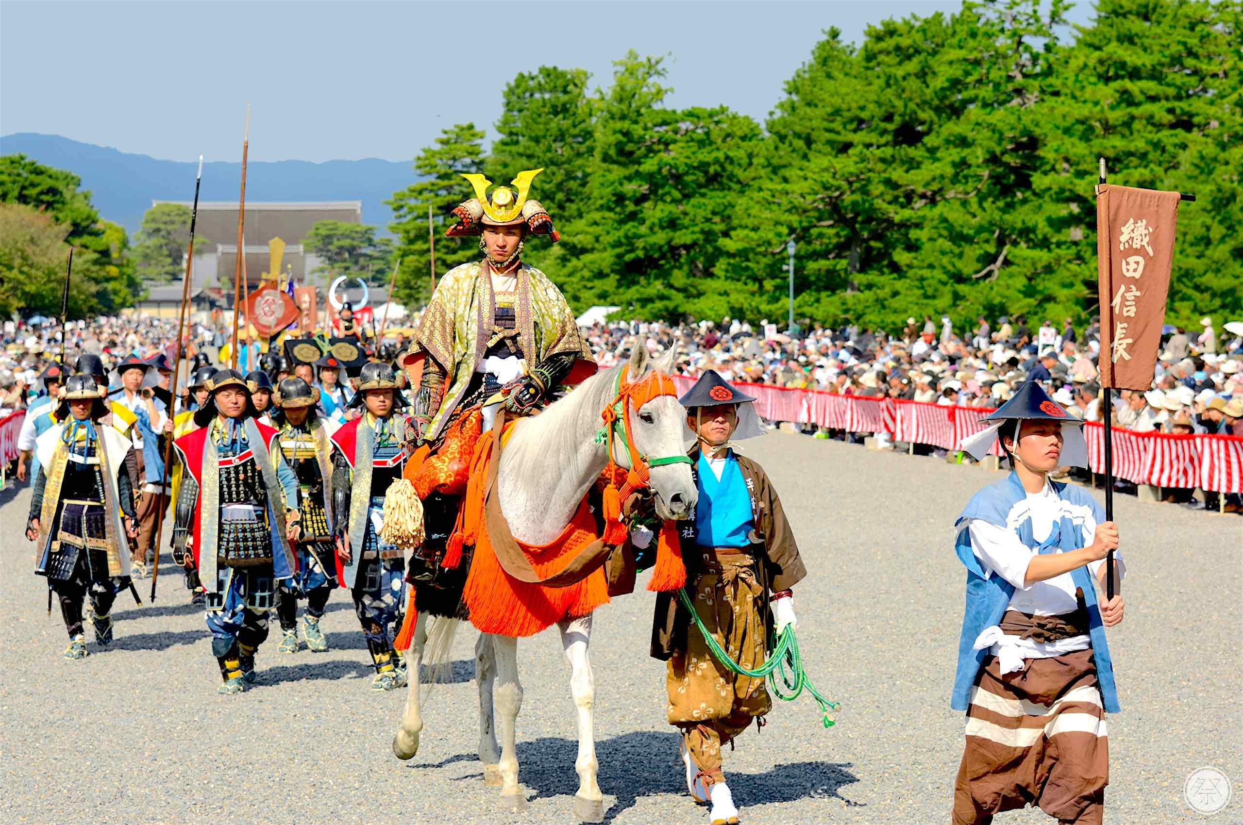 - O procesiune spectaculoasă care începe la Palatul Imperial din Kyoto și se încheie la Sanctuarul Heian Jingu, traversând bulevarde elegante și parcuri istorice.
