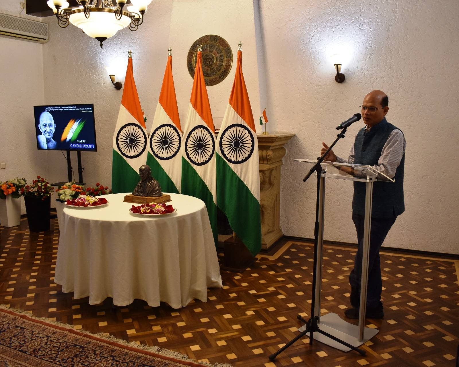 La București, aceste valori universale au fost readuse în prim-plan de Ambasada Indiei, care a marcat cea de-a 156-a aniversare a nașterii lui Gandhi Ji printr-o ceremonie specială. În prezența Ambasadorului Indiei, a oficialilor ambasadei, a comunității indiene și a prietenilor Indiei, a fost dezvelit bustul său în incinta Ambasadei, un moment însoțit de omagii florale și reflecții asupra actualității mesajului său.