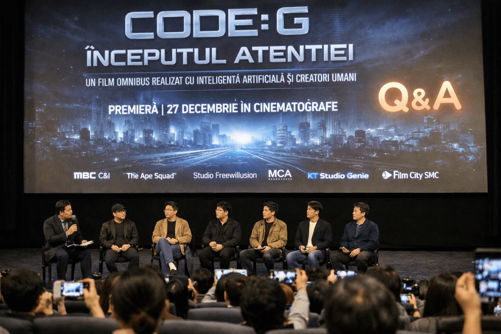 Filmul omnibus „Code: G – Începutul Atenției” reprezintă un pas important în evoluția cinematografiei moderne, fiind realizat printr-o colaborare inovatoare între regizori reali, umani și inteligență artificială generativă. Producția a avut premiera pe 27 decembrie, urmând să fie proiectată în 33 de cinematografe CGV din întreaga țară.