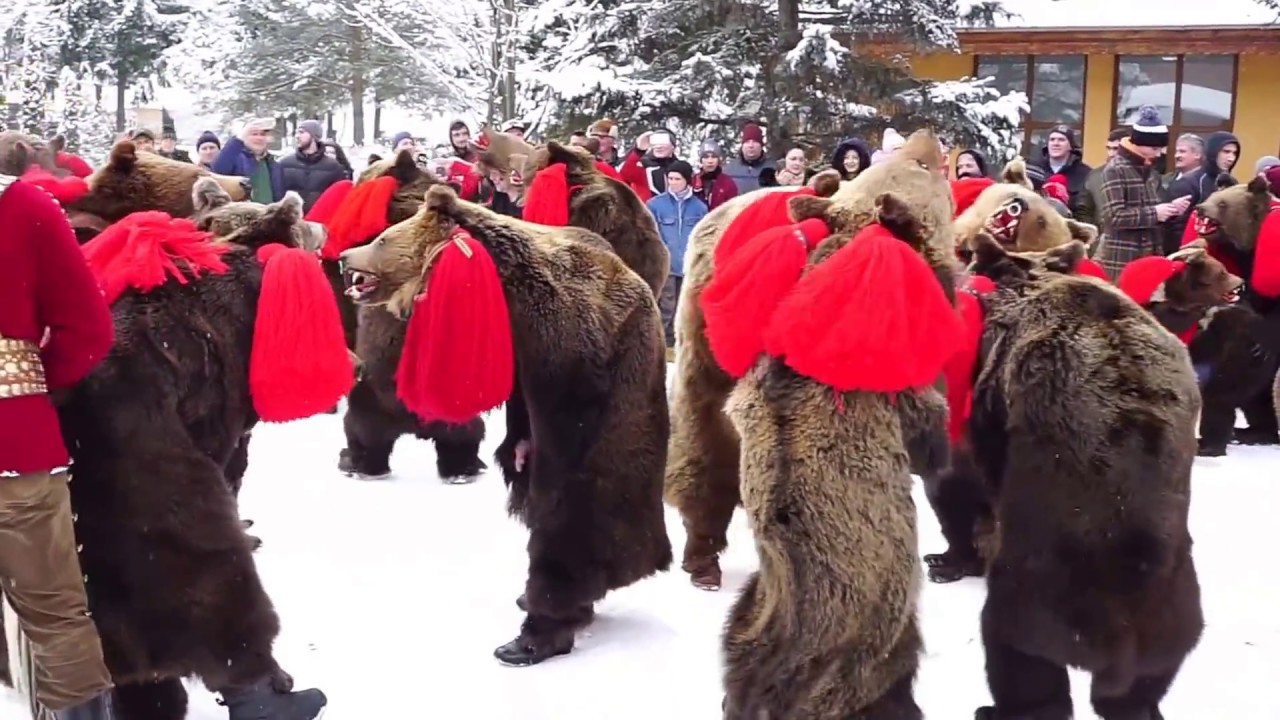 Localnicii costumează în blănuri de urs și colindă casele sau defilează prin centrul orașului. Cei care primesc urșii în gospodărie se consideră norocoși pentru anul care vine. Evenimentul include dansuri tradiționale, colinde și momente simbolice, iar cetele de urși oferă un adevărat spectacol vizual și cultural. Festivalul central are loc de obicei în jurul datei de 30 decembrie, când toate cetele se adună pentru un spectacol impresionant, vizionat de mii de oameni.