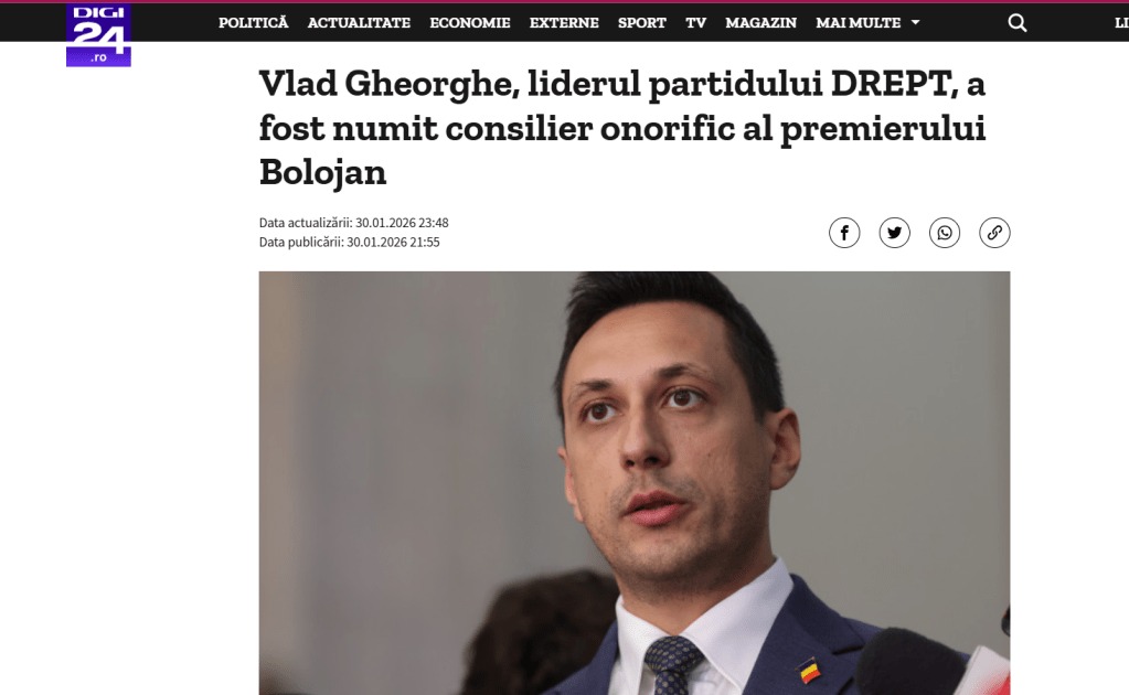 Într-o mișcare care a lăsat în urmă chiar și nominalizările pentru Oscar, premierul Ilie Bolojan l-a numit oficial pe Vlad Gheorghe în funcția supremă de consilier onorific.