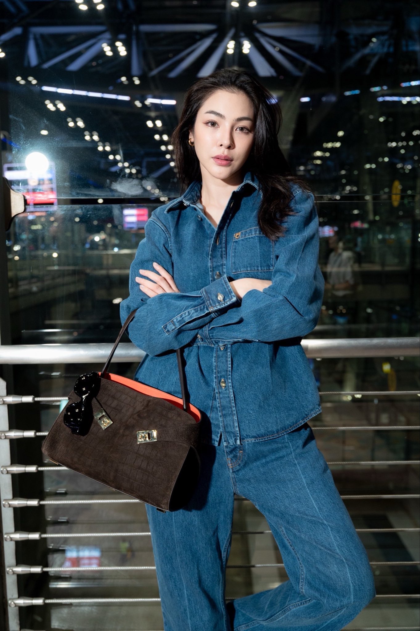 Apariția lui Faye Peraya a propus o interpretare contemporană a denimului, mizând pe coerență vizuală și proporții bine calibrate. Ținuta monocromă, construită pe linii clare, a pus accentul pe siluetă și textură, evitând suprapuneri inutile sau artificii decorative.