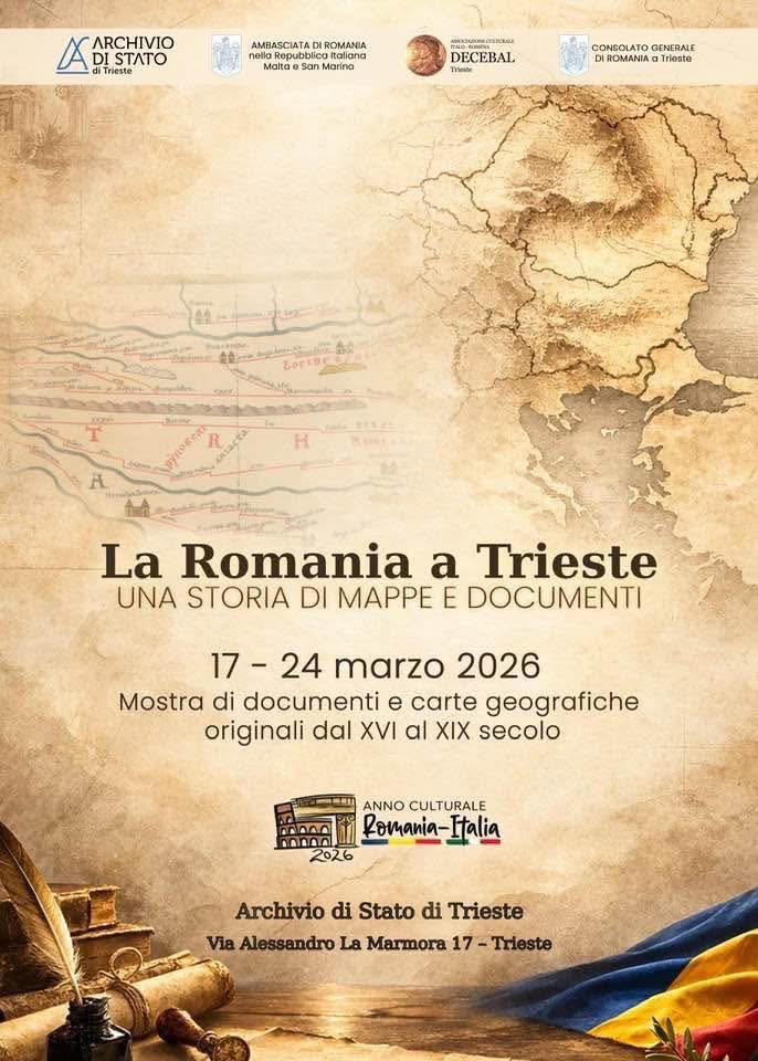 Trieste devine, în aceste zile, un punct de întâlnire între trecut și prezent, între memorie și identitate europeană, odată cu inaugurarea expoziției „România la Trieste. O istorie în hărți și documente”, găzduită de Arhivele de Stat din orașul italian.